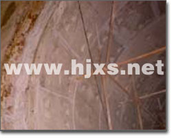 4.1.2基面處理 基面處理采用兩種方法。明顯滲漏水部位采用鑿孔注漿堵水(注漿材料為微分子納米混合防水堵漏材料或水溶性聚氨酯),其他部位滲水采取快凝水泥封堵?炷郤H外滲劑與425#普通硅酸鹽水泥按比例混合,或用雙快水泥。然后進(jìn)行封堵。水泥凝結(jié)時(shí)間調(diào)節(jié)在2min左右。